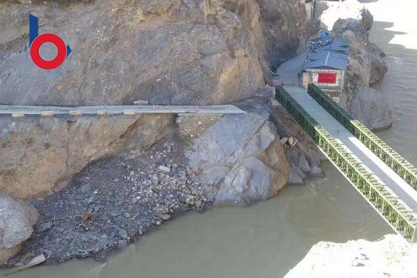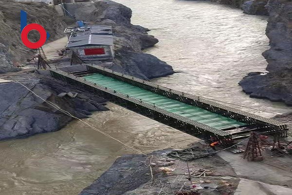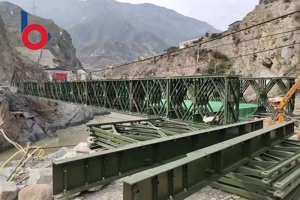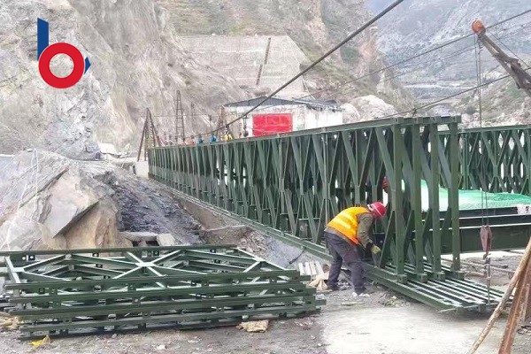 江蘇貝雷鋼橋有限公司派專門的技術(shù)人員前往甘肅省甘南藏族自治州迭部縣,架設(shè)橋型四排單層加強(qiáng)型(QSR)鋼橋,貝雷鋼橋架設(shè)的鋼橋使用200型產(chǎn)品,全橋長45.72米,屬于單跨橋,整個橋面凈寬 4.2米,荷載55噸。